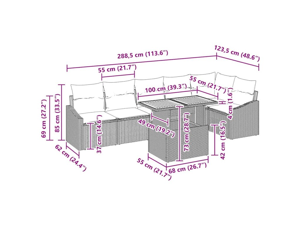 - Jednoduchá údržba: Starostlivosť o túto súpravu je jednoduchá. Stačí ju zakryť, keď ju nepoužívaš, a pohodlne čistiť odnímateľné poťahy. Pravidelná údržba udržiava set svieži a pozývajúci na každú akciu.
