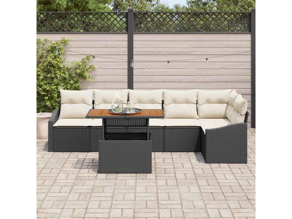 Záhradný jedálenský set s vankúšom 7 pcs Čierna a krémová 3349844