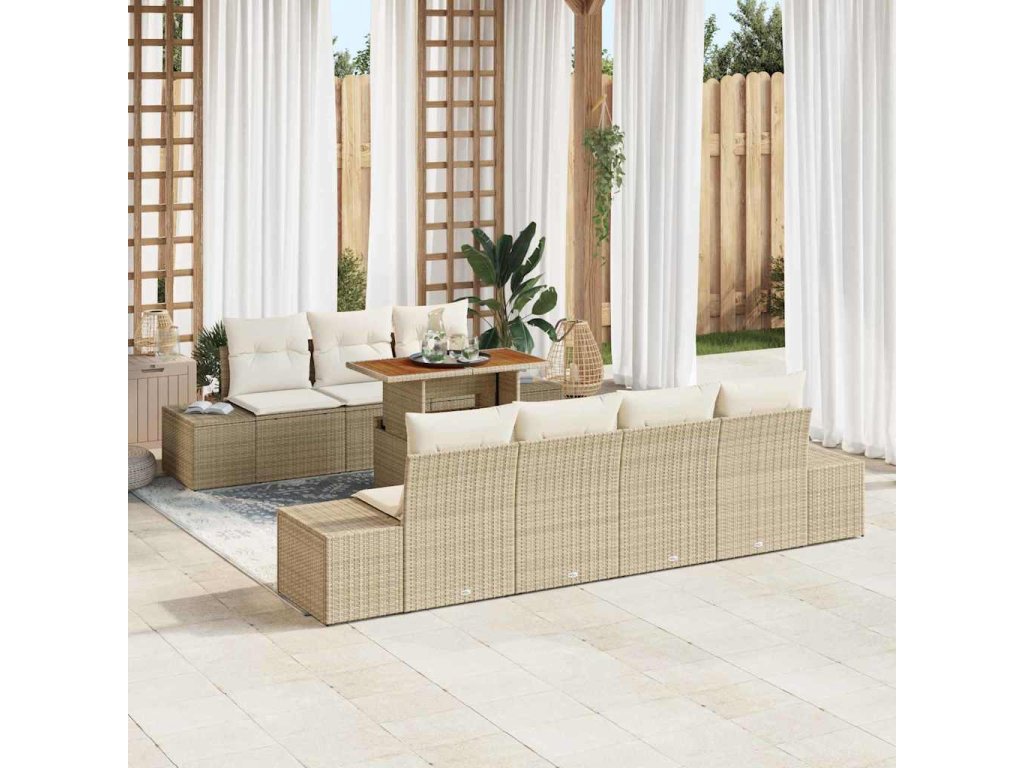 Záhradný jedálenský set s vankúšom 8 pcs Béžová a krémová 3349924