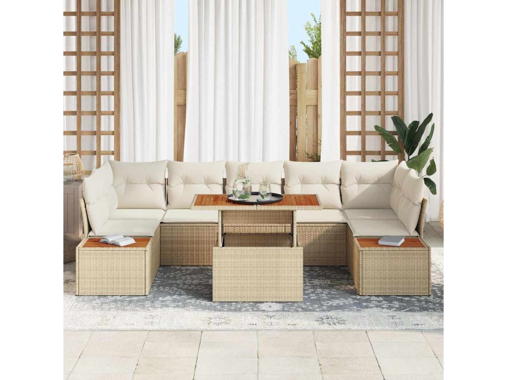 Záhradný jedálenský set s vankúšom 8 pcs Béžová a krémová 3350048