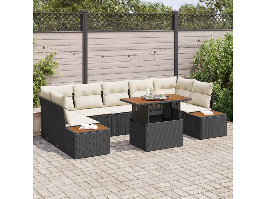 Záhradný jedálenský set s vankúšom 8 pcs Čierna a béžová 3350044