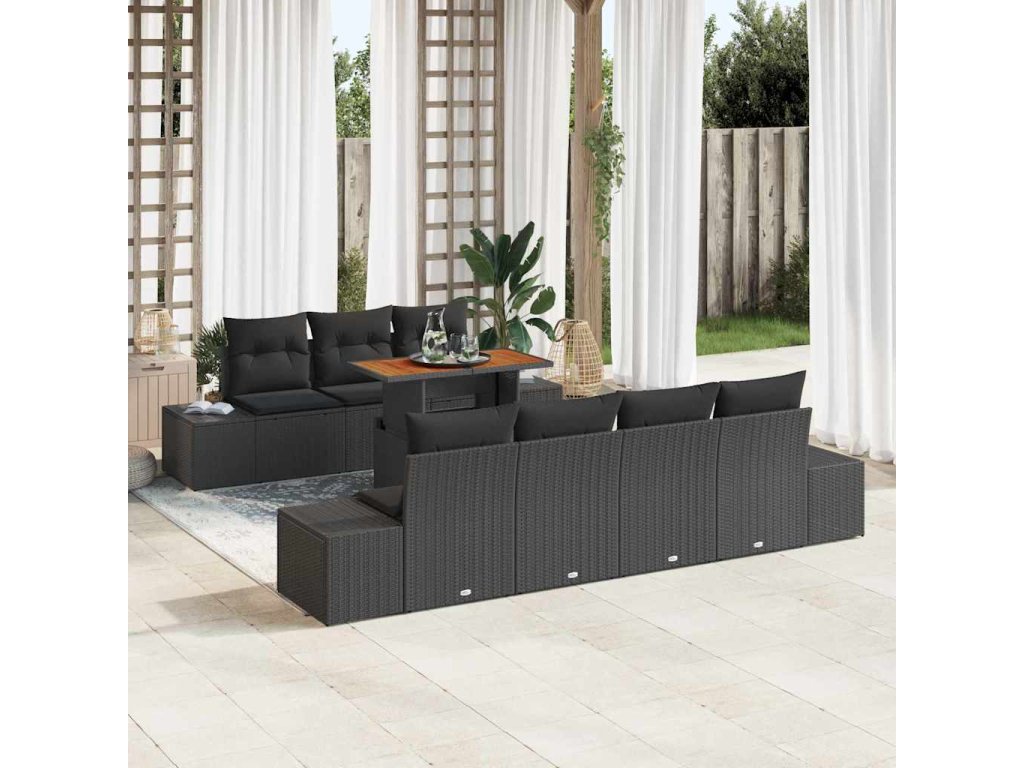 Záhradný jedálenský set s vankúšom 8 pcs Čierna a Hnedá 3349925