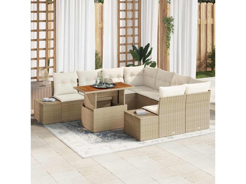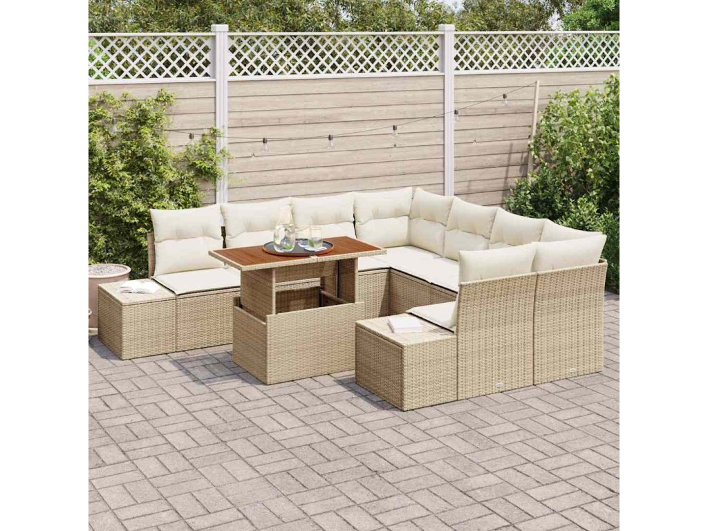 Záhradný jedálenský set s vankúšom 9 pcs Béžová a krémová 3349945