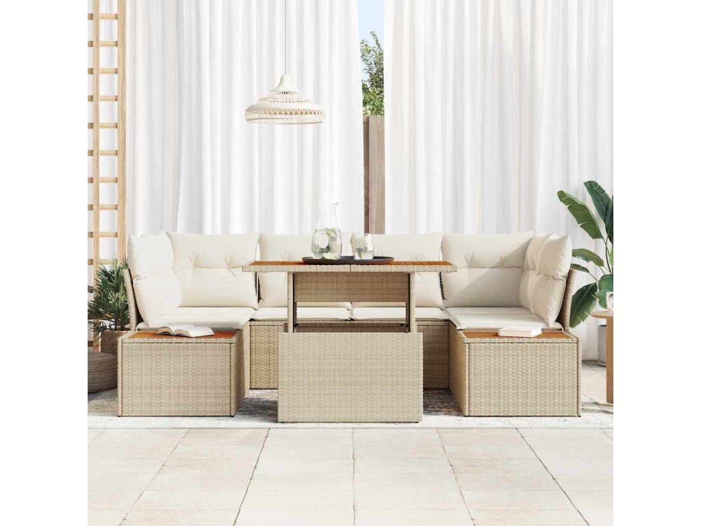 Záhradný jedálenský set s vankúšom 9 pcs Béžová a krémová 3350038