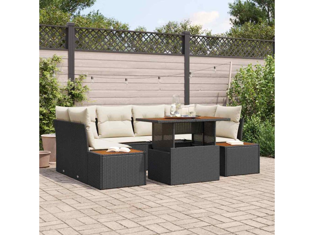 Záhradný jedálenský set s vankúšom 9 pcs Čierna a béžová 3350034