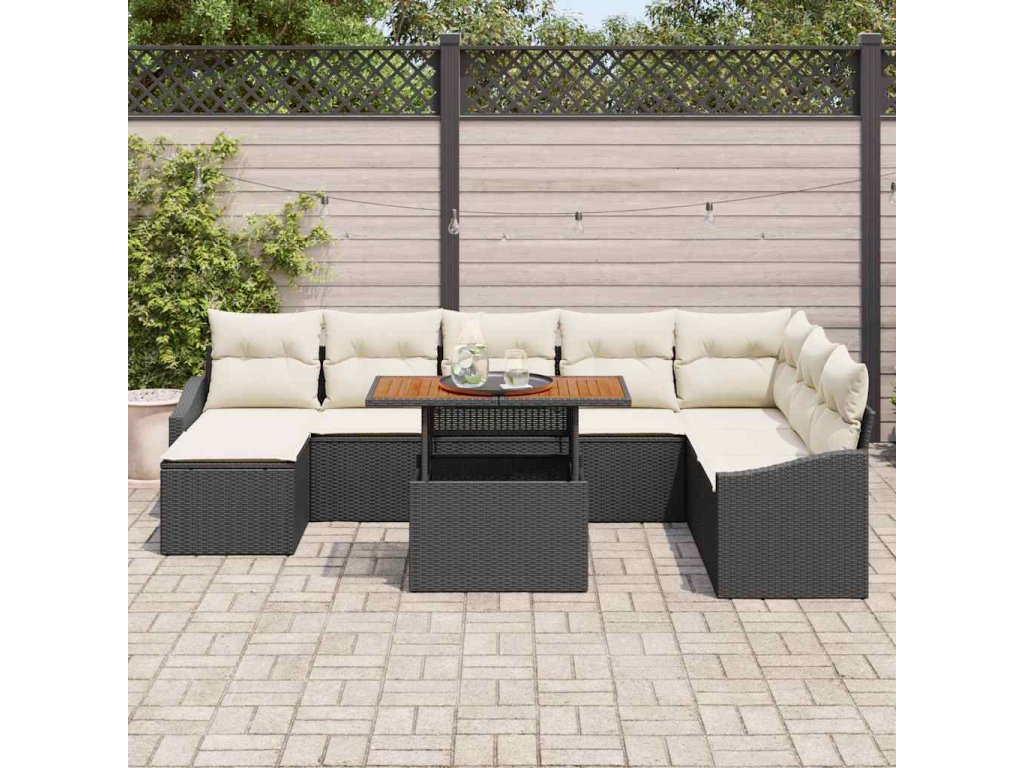 Záhradný jedálenský set s vankúšom 9 pcs Čierna a krémová 3349872