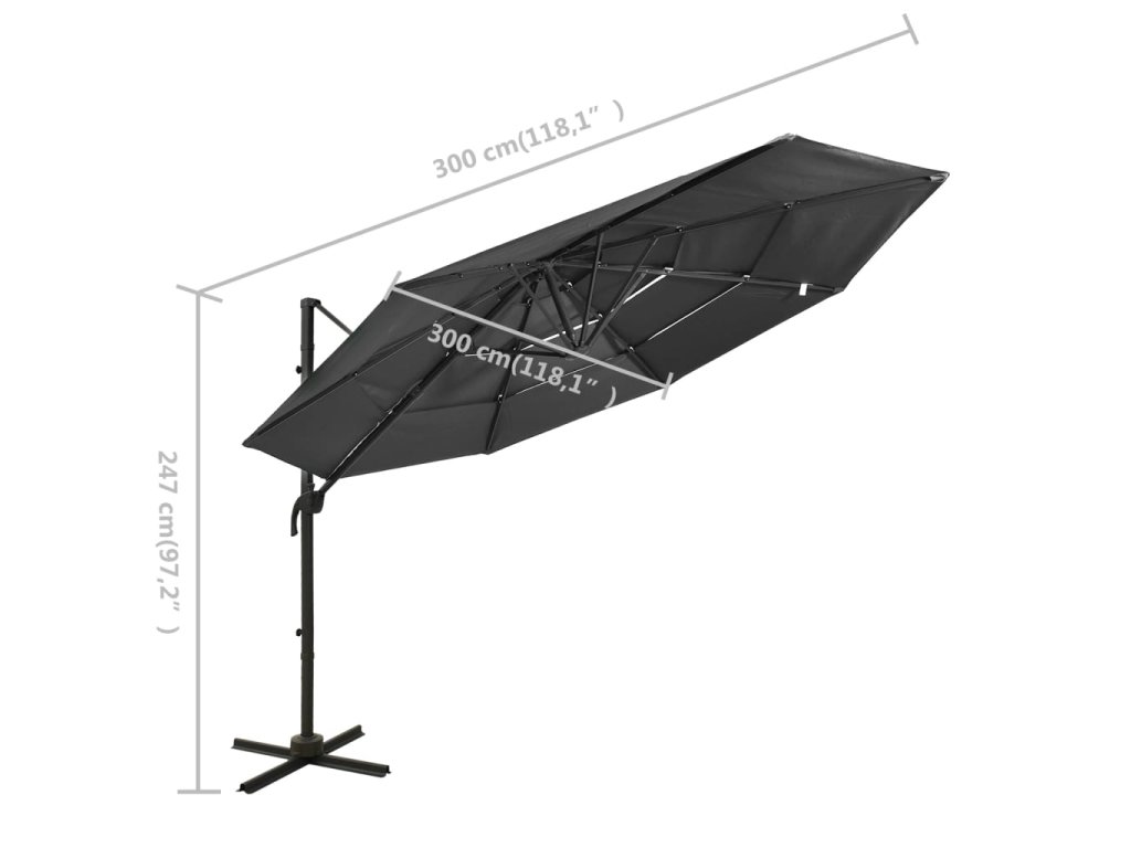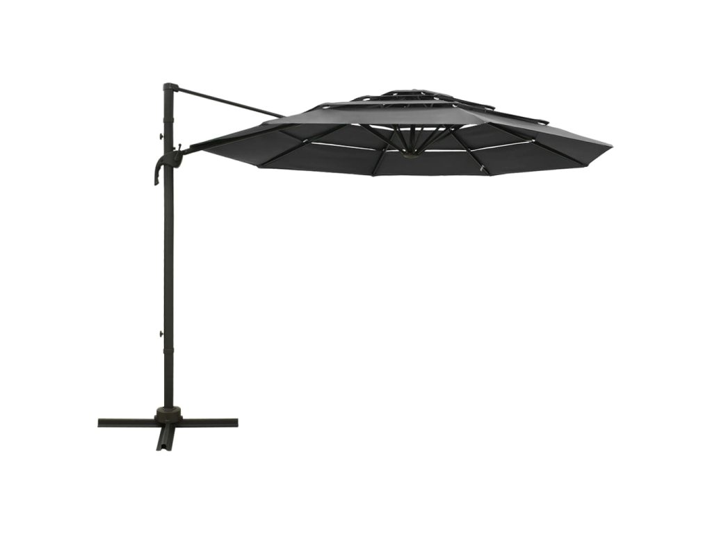 4-stupňový záhradný slnečník, hliníková tyč, antracitový 3x3 m 313830