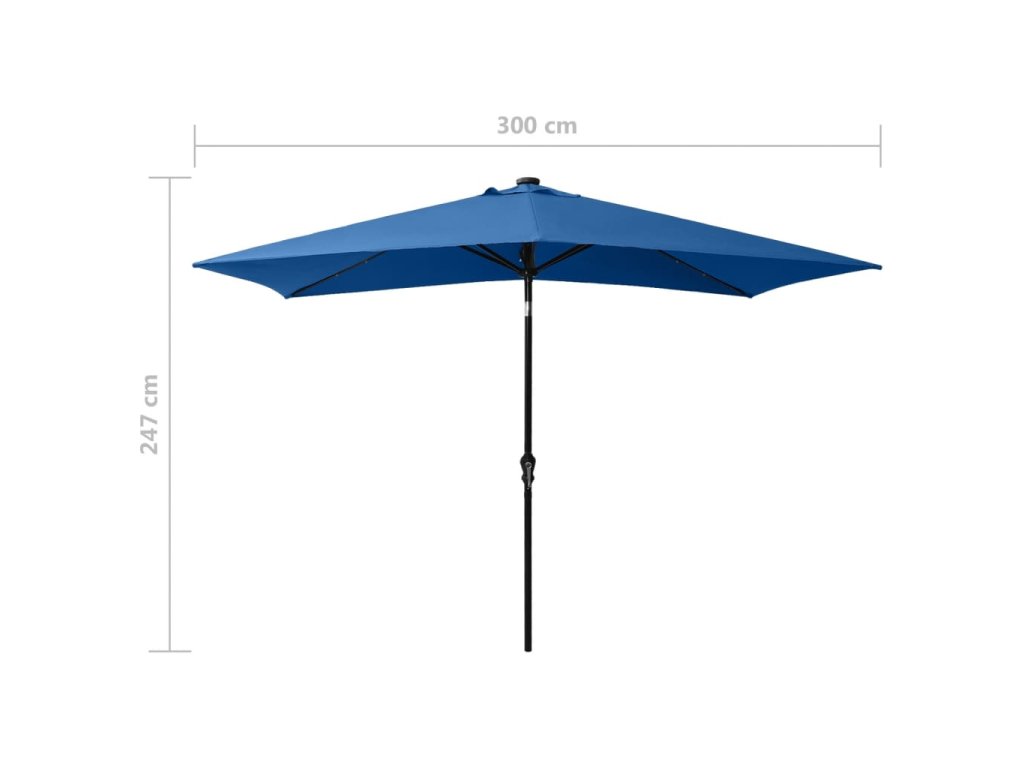 Záhradný slnečník s LED, oceľová tyč, azúrový 2x3 m 313793