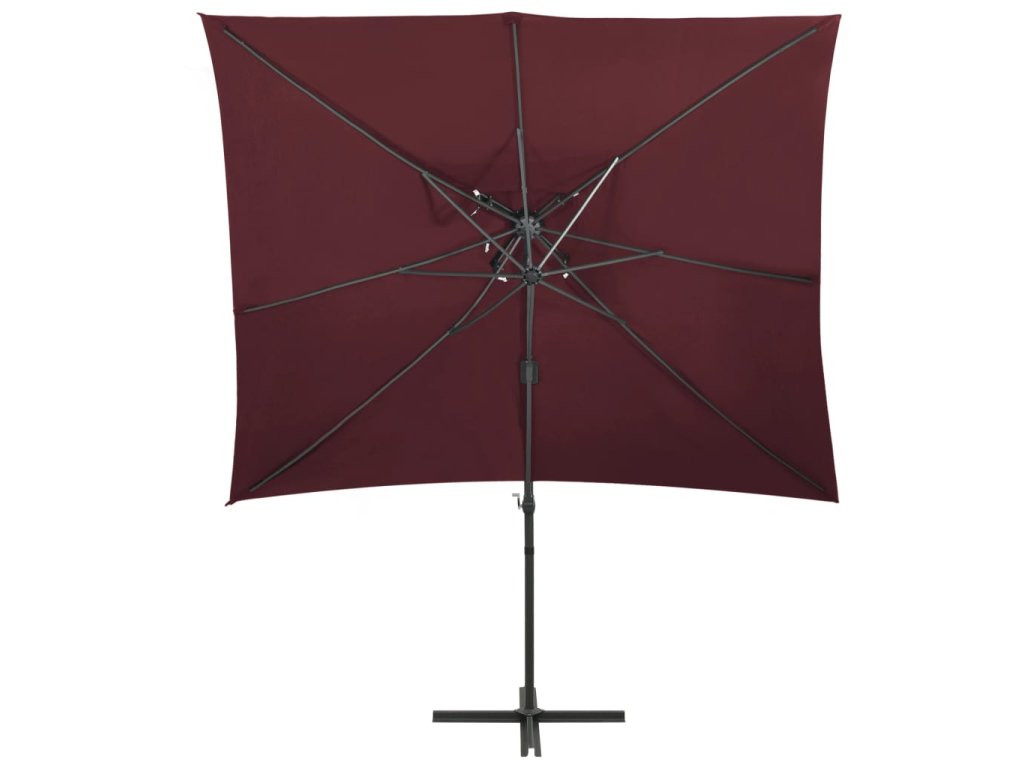 Závesný záhradný slnečník, dvojitá strieška, bordový 250x250 cm 312366