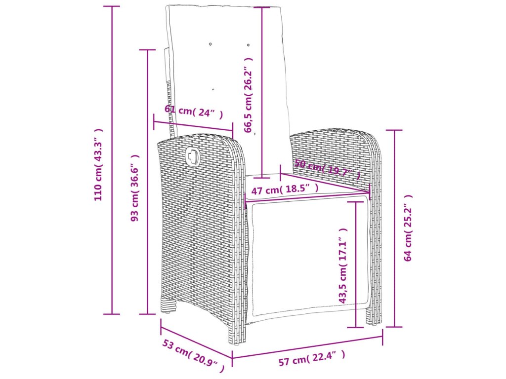 - Nastaviteľná opierka chrbta a nôh: Tento záhradný nábytok má rukoväť na pravej strane. Potiahnutím rukoväte si môžete nastaviť opierku chrbta a nôh do ľubovoľnej polohy. Opierku chrbta a opierku nôh môžete tiež rýchlo vrátiť do pôvodnej polohy pomocou rukoväte.