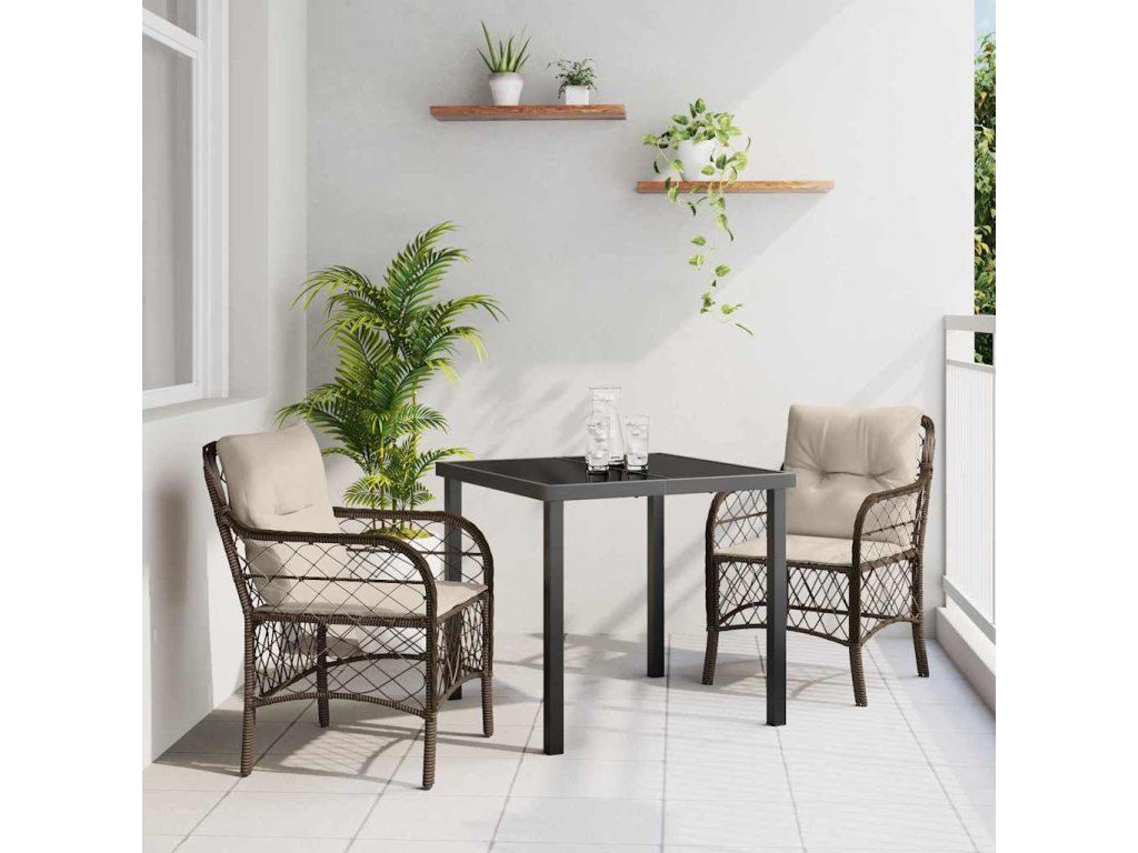 Záhradný jedálenský set s vankúšom 3 pcs Hnedá polyratan 3380211