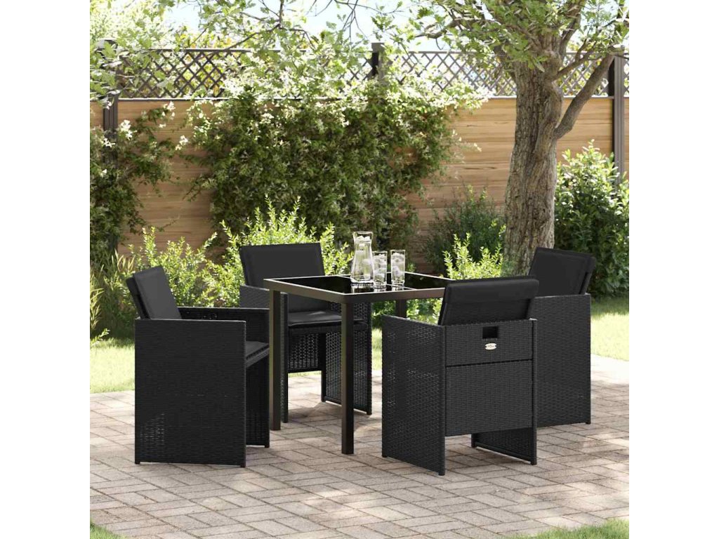 Záhradný jedálenský set s vankúšom 5 pcs Čierna Poly ratan 3379944
