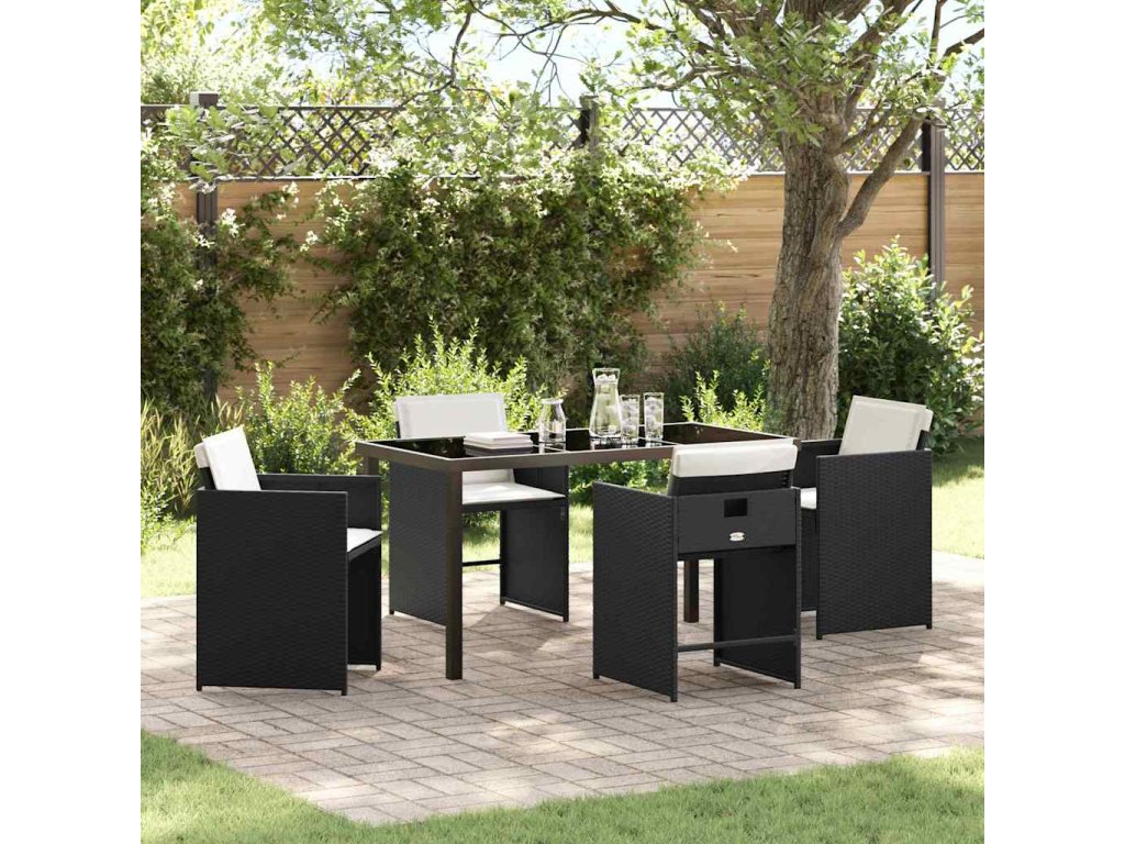 Záhradný jedálenský set s vankúšom 5 pcs Čierna polyratan 3379973
