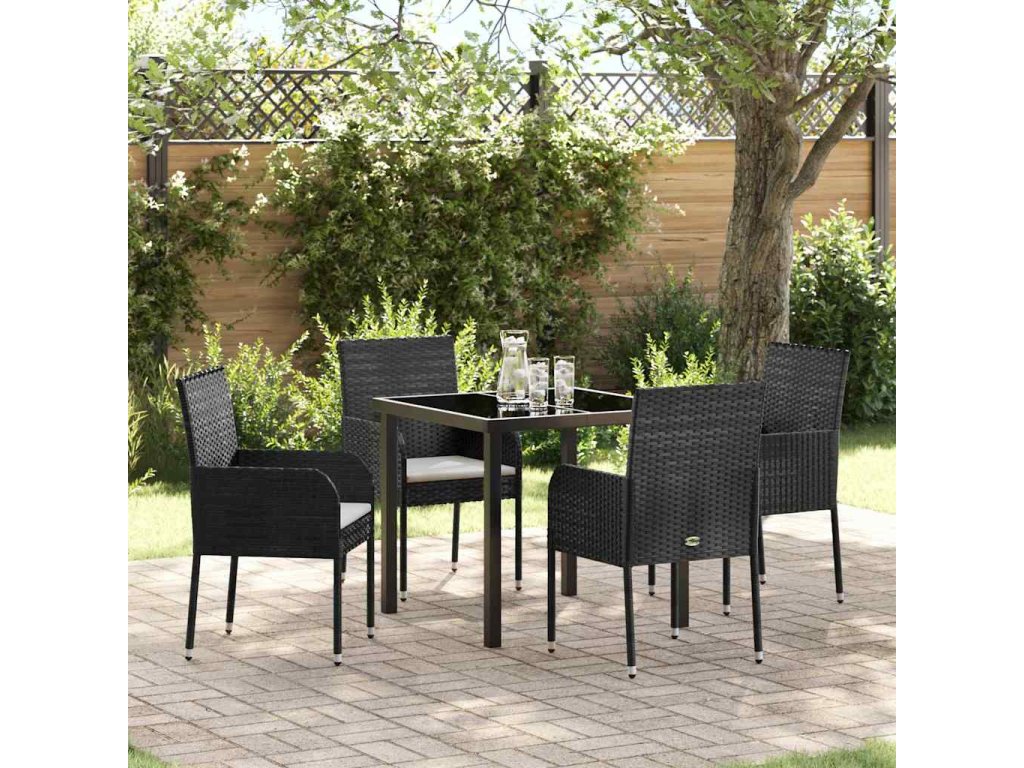 Záhradný jedálenský set s vankúšom 5 pcs Čierna polyratan 3380100