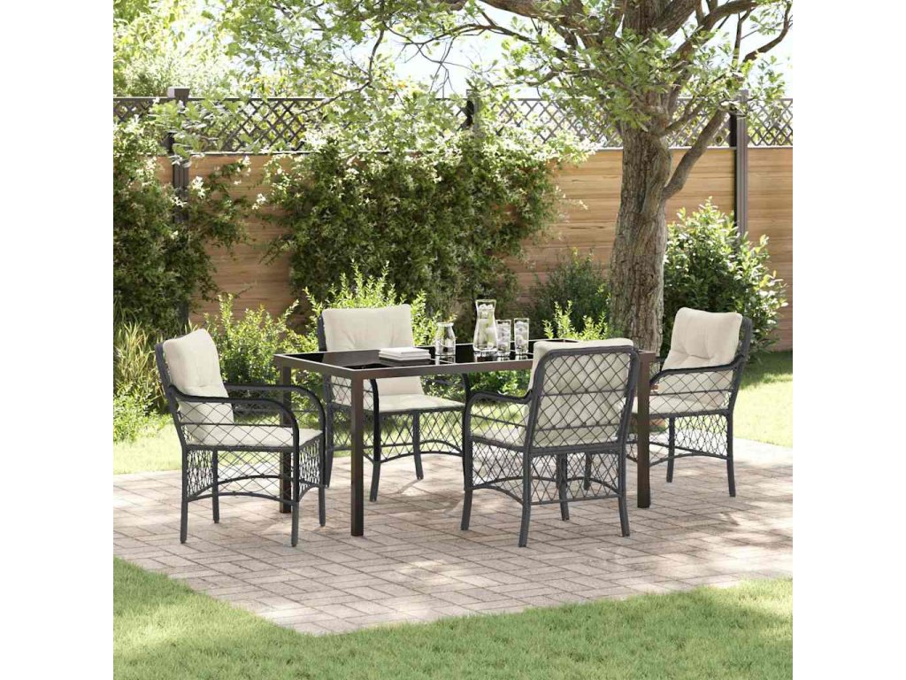 Záhradný jedálenský set s vankúšom 5 pcs Čierna polyratan 3380200