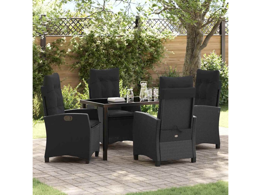 Záhradný jedálenský set s vankúšom 5 pcs Čierna polyratan 3380374