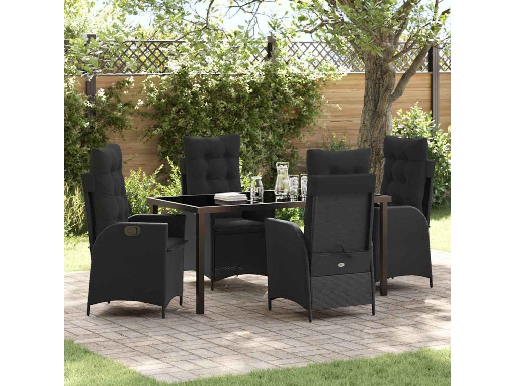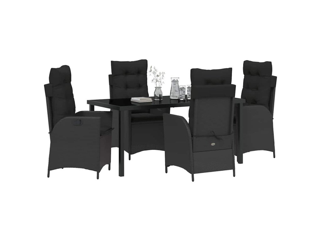 Záhradný jedálenský set s vankúšom 5 pcs Čierna polyratan 3380487