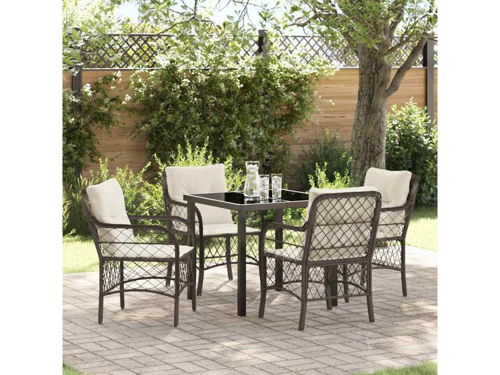 Záhradný jedálenský set s vankúšom 5 pcs Hnedá polyratan 3380212