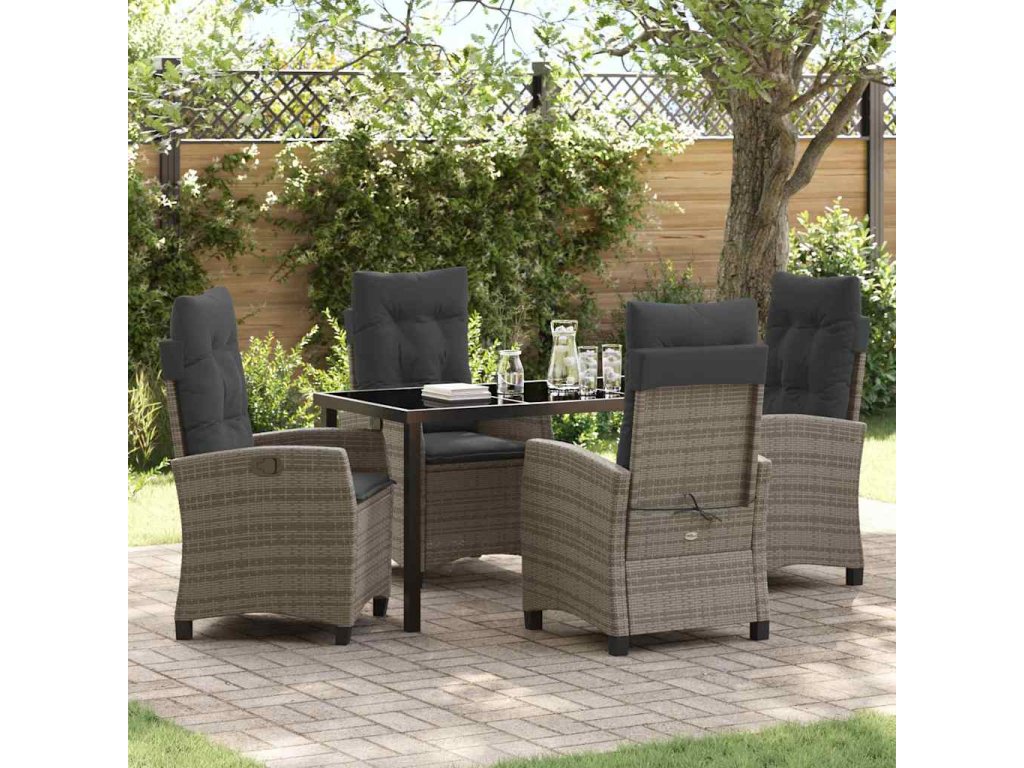 Táto moderná záhradná jedálenská súprava zachytáva esenciu minimalistického štýlu a stáva sa centrom vášho vonkajšieho priestoru. Navrhnutá pre záhrady a terasy, kombinuje súčasný vzhľad s praktickosťou. Sada poskytuje skvelý zážitok z jedenia počas letných stretnutí, spája štíhle oceľové rámy so pohodlnou textúrou poly ratanu. Každý kus, od priehľadného skleneného stola po nastaviteľné operadlá, ponúka pohodlné a príjemné prostredie na rodinné jedlá alebo hostenia.