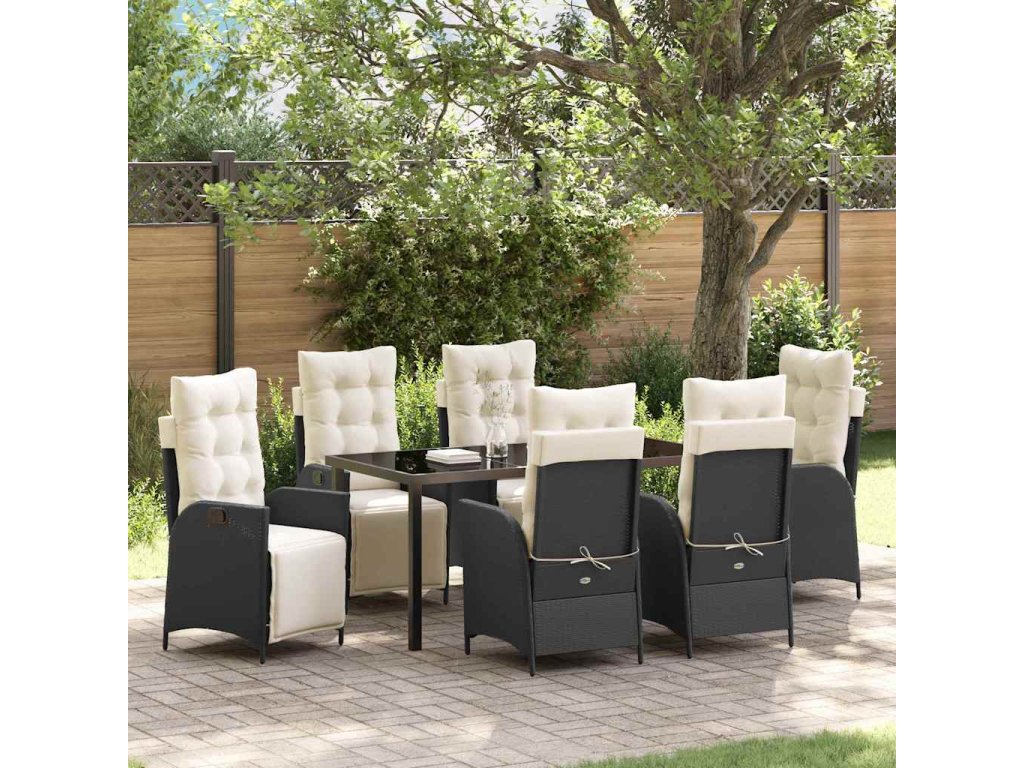 Záhradný jedálenský set s vankúšom 7 pcs Čierna polyratan 3380530