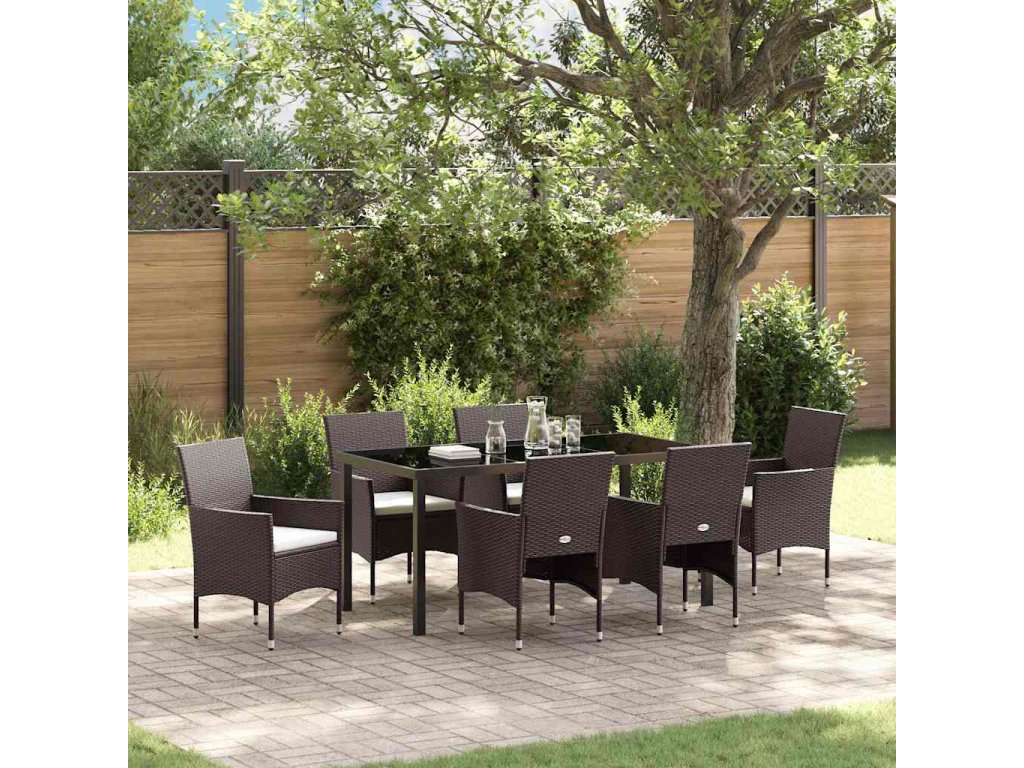 Záhradný jedálenský set s vankúšom 7 pcs Hnedá polyratan 3379748